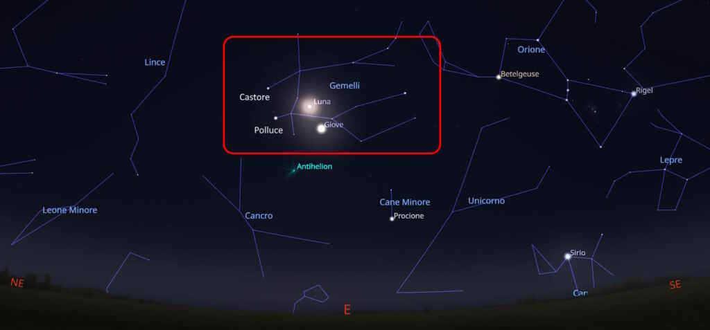 Alzando gli occhi al cielo la sera del 3 gennaio troveremo ad attenderci anche un'altra sorpresa, che promette di rendere ancora più magico lo spettacolo del plenilunio: intorno alle 20:00 il nostro satellite si troverà in congiunzione con Giove. Lo spettacolo, tempo permettendo, sarà perfettamente visibile a occhio nudo. Il Pianeta luminosissimo e la Luna al massimo del suo splendore saranno affiancati da due astri impossibili da confondere nel firmamento: le stelle Castore e Polluce brilleranno infatti a breve distanza dai due corpi celesti.