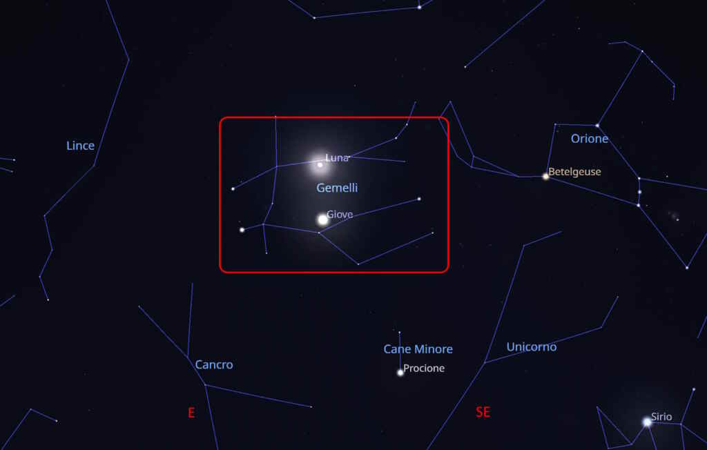 Congiunzione Luna - Giove visibile a occhio nudo