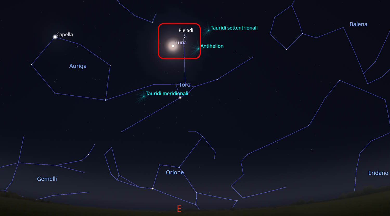 Abbiamo già anticipato che, in presenza di cieli sereni e sgombri da nubi, la congiunzione tra il nostro satellite naturale e le Pleiadi sarà perfettamente visibile a occhio nudo. Individuare i due oggetti celesti non sarà certo difficile, visto che la Luna splenderà nella sua quasi totalità nella costellazione del Toro.