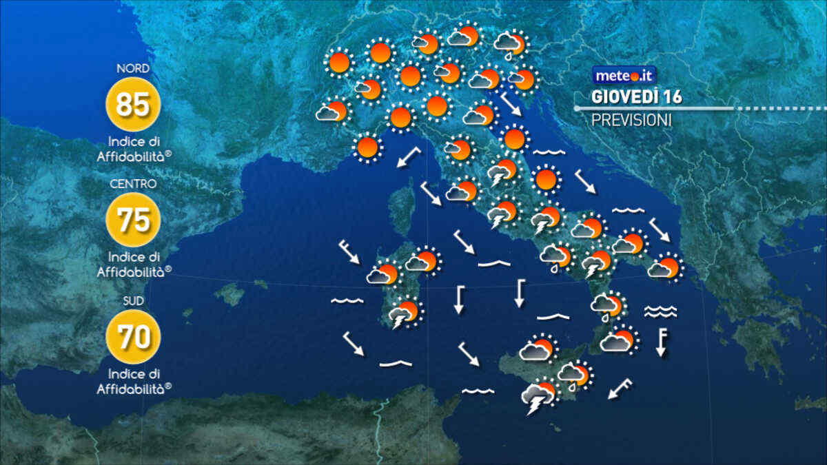 Le previsioni meteo per oggi, giovedì 16 aprile