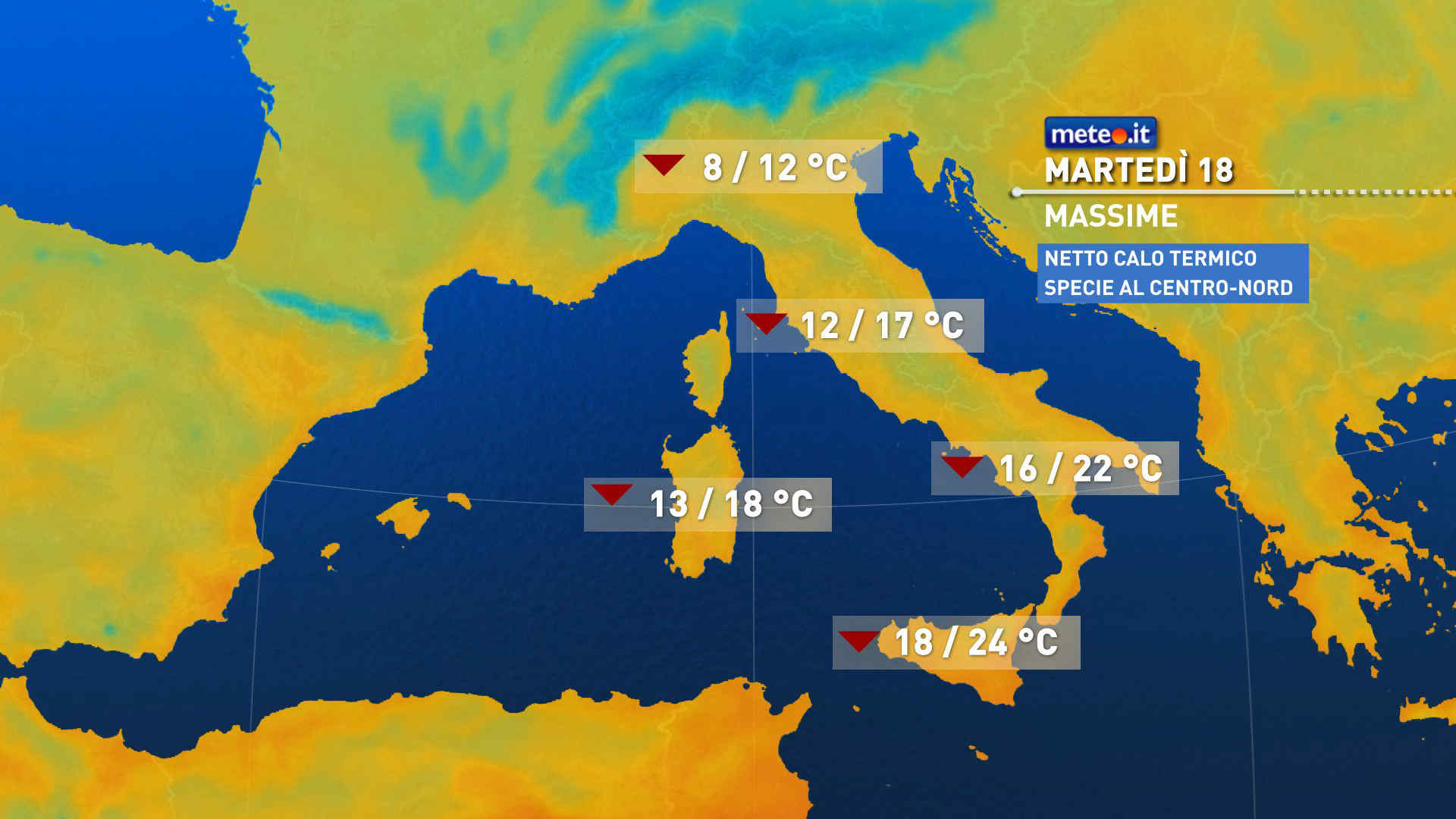 Martedì bel tempo in gran parte del Nord, fatta eccezione per un po’ di nubi e qualche piovasco a inizio giornata su Emilia e Romagna. Cielo in generale nuvoloso o molto nuvoloso al Centro-Sud e Isole, con piogge che nel corso del giorno bagneranno quasi tutte le regioni, risparmiando solo Toscana e Sardegna. Temperature massime ovunque in diminuzione; il calo più marcato si avvertirà al Nordest, regioni adriatiche ed estremo Sud. Forti venti meridionali sullo Ionio; intensi venti di Bora o Tramontana su Alto Adriatico, Liguria e Alto Tirreno. Mari mossi o molto mossi.