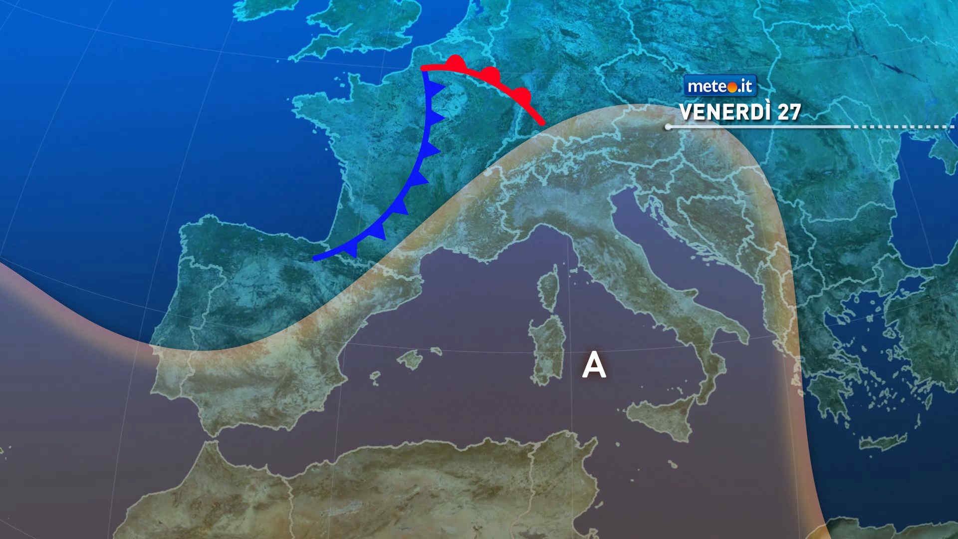Nel comparto euro-mediterraneo l’anticiclone continuerà a dominare la scena, ma con tendenza a un graduale indebolimento nei settori occidentali. Tra il fine settimana e l’inizio della prossima, alcuni ammassi nuvolosi riusciranno a raggiungere il Mediterraneo occidentale e l’Italia, senza però l’arrivo della parte più attiva delle perturbazioni atlantiche.