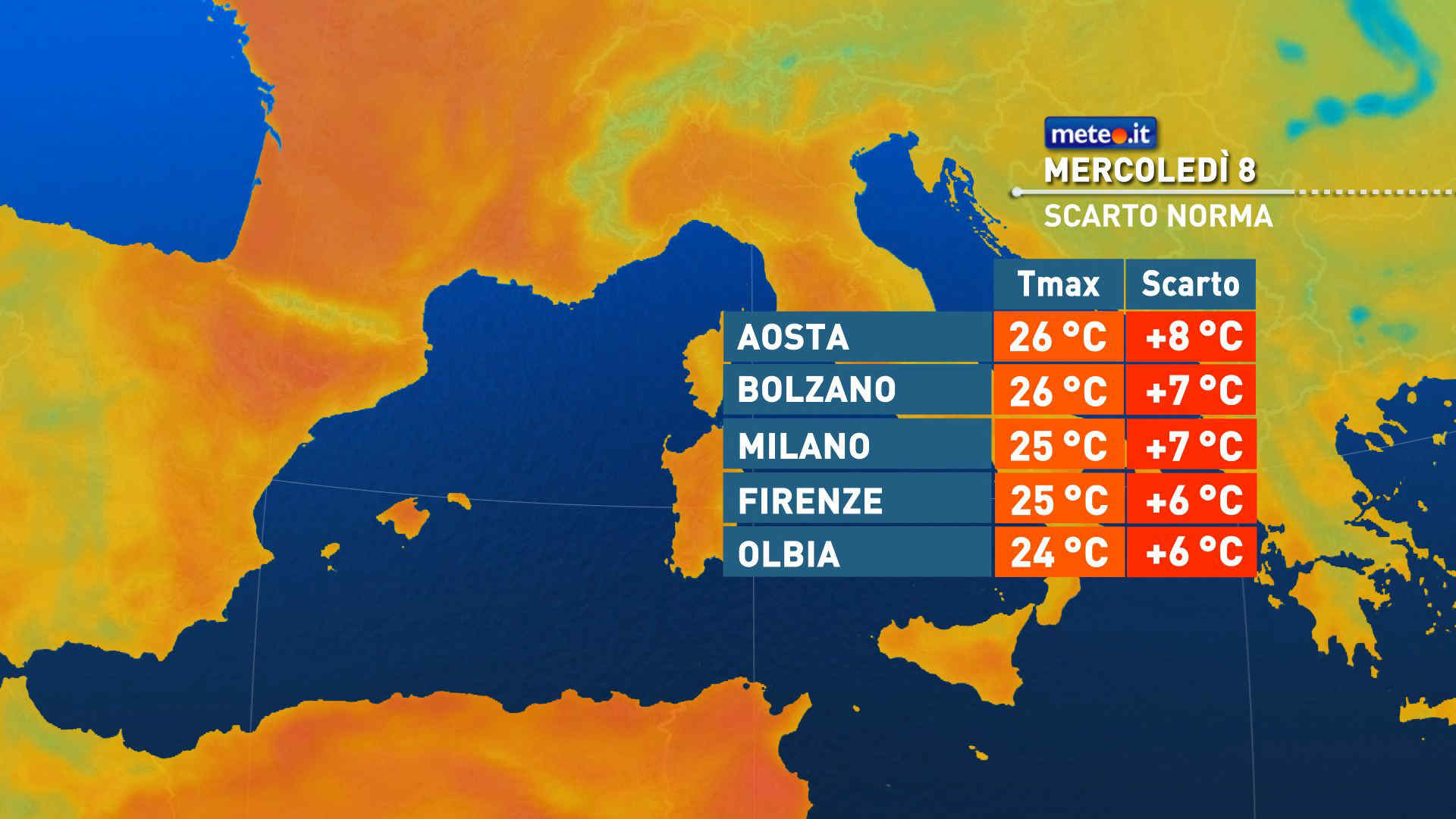 Previsioni meteo per mercoledì 8 aprile