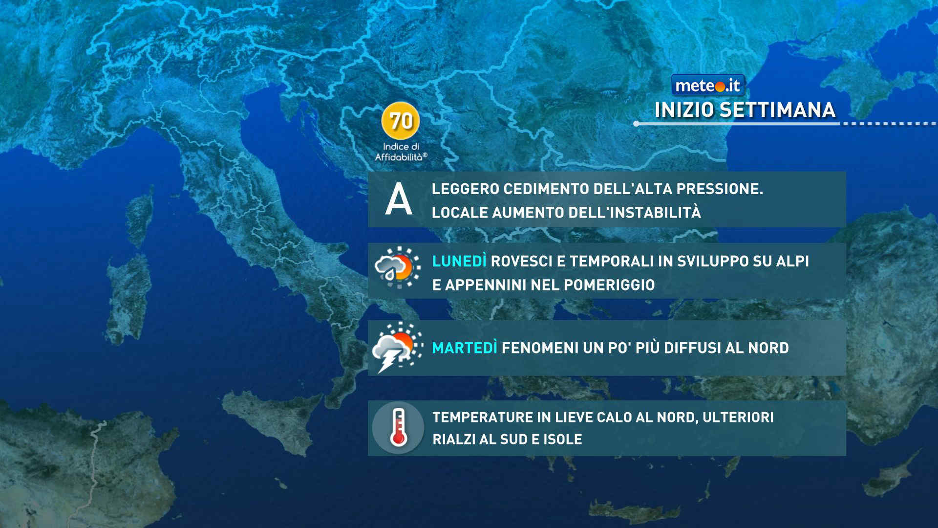 Ad inizio settimana cede l'alta pressione con ritorno dell'instabilità al Nord: la tendenza meteo