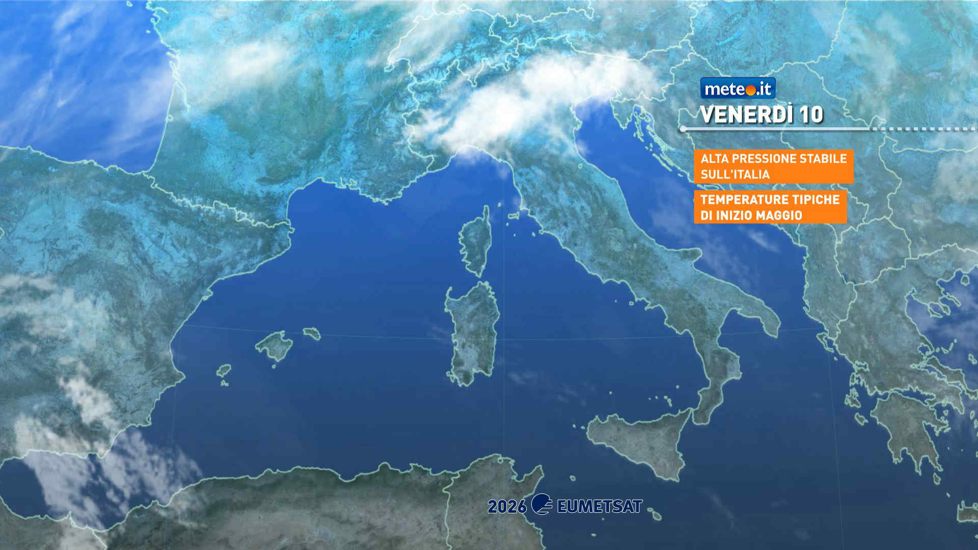 Tempo stabile in tutta l’Italia anche in questo venerdì 10 aprile, con qualche nuvola in più al Nord-Est e temperature che si mantengono oltre la media soprattutto al Nord e regioni tirreniche.