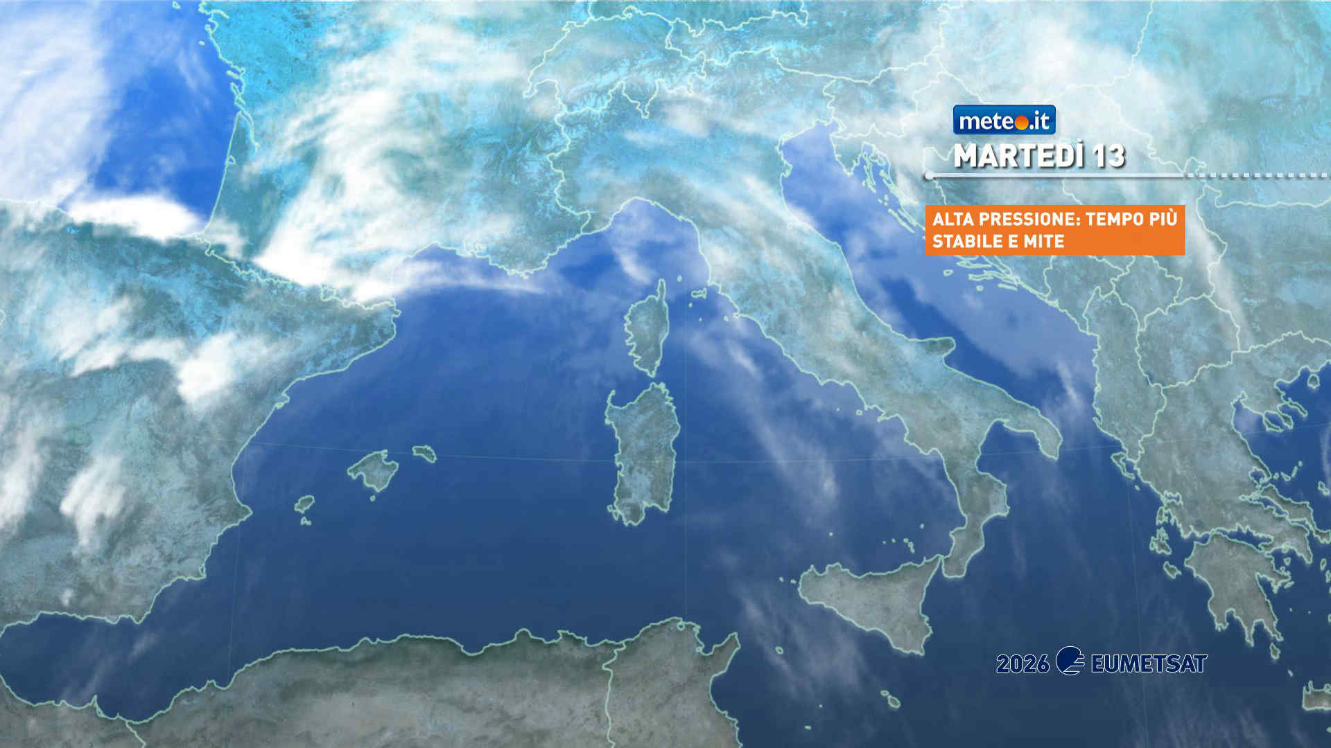 Nella parte centrale di questa settimana l’anticiclone tornerà a occupare la nostra Penisola, tenendo lontane le perturbazioni e smorzando il flusso delle gelide correnti artiche. Tra martedì e giovedì ci attendono giornate nel complesso tranquille dal punto di vista meteo, con poche piogge e con una sensibile attenuazione del freddo: le temperature sono previste quasi dappertutto in rialzo, con valori che si spingeranno anche al di sopra della norma.