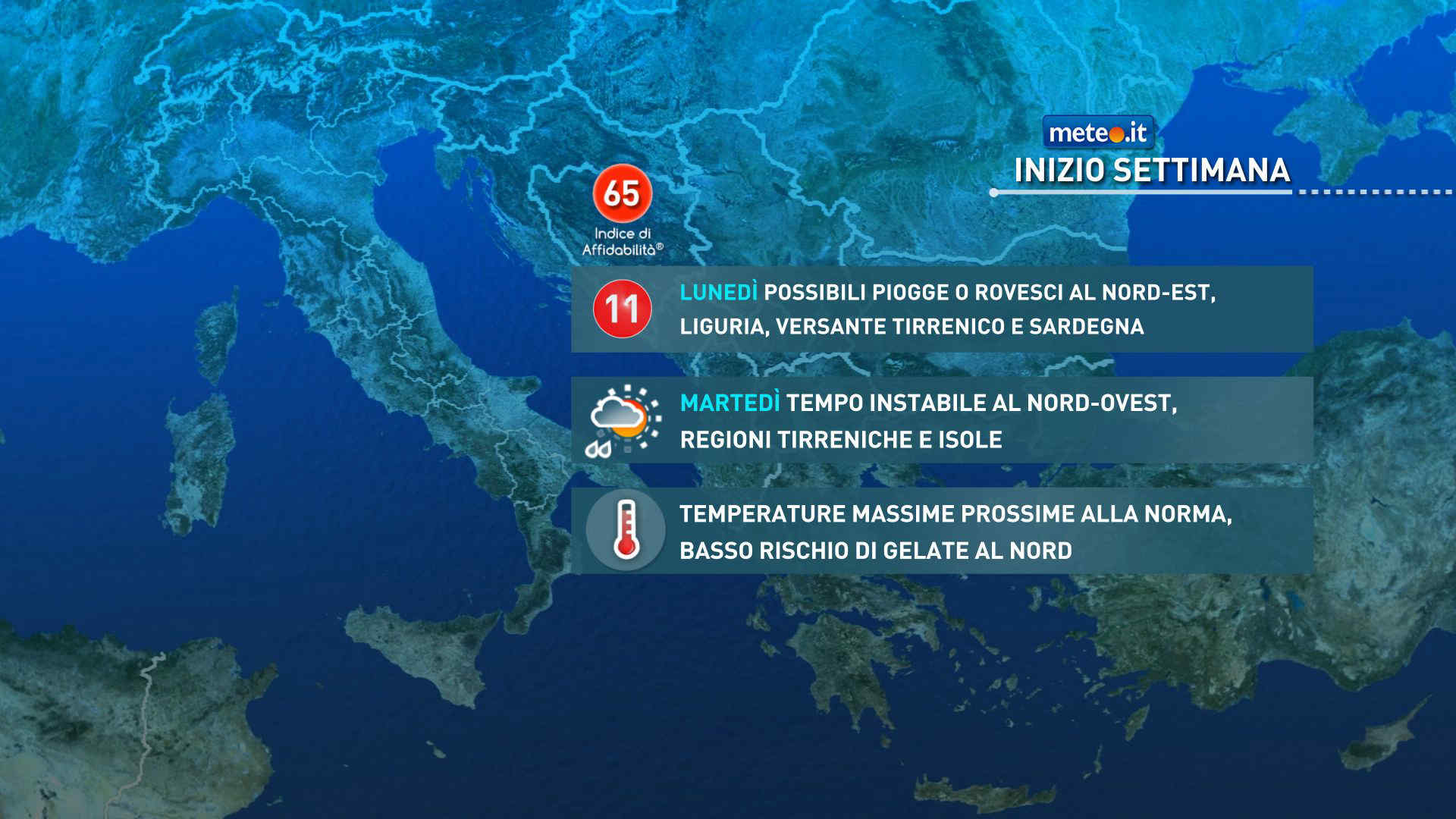 Martedì 2 al Nord e sulla Toscana cielo nuvoloso o molto nuvoloso; nubi in aumento anche su Sardegna, Lazio, Puglia meridionale, mentre sul resto del Paese la giornata sarà più soleggiata. Non si escludono piogge nell’area del Levante Ligure e sulla bassa Toscana. Venti moderati di Scirocco nel canale di Sicilia. Temperature senza variazioni significative o in ulteriore leggero rialzo.