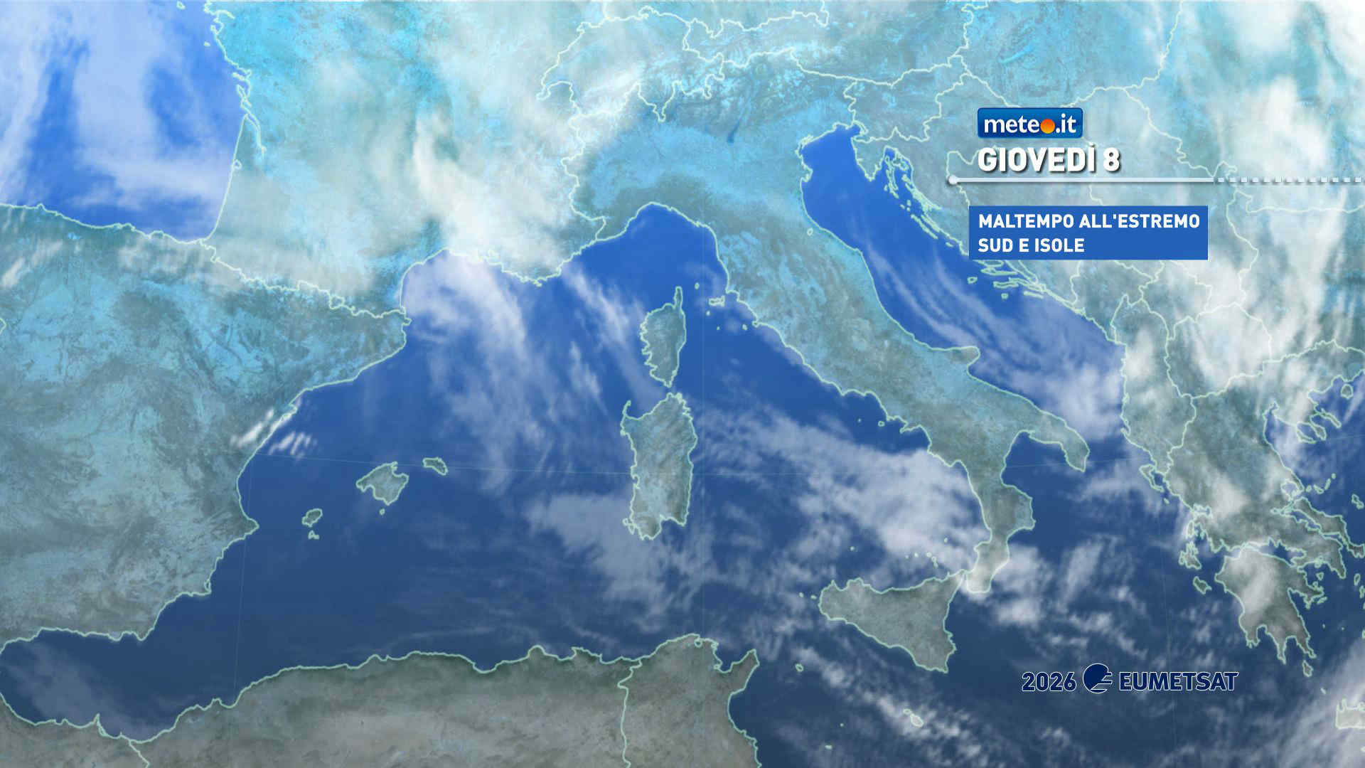 Giovedì 8 gennaio insiste il maltempo invernale in parte del Centro-Sud, con un aumento del freddo dovuto alle gelide correnti artiche che si stanno propagando con decisione anche sulle regioni meridionali. Per venerdì è invece atteso un sensibile ma temporaneo rialzo delle temperature, favorito dall’arrivo di più miti correnti occidentali, che porteranno anche nuove piogge, soprattutto sul versante tirrenico del Paese.
