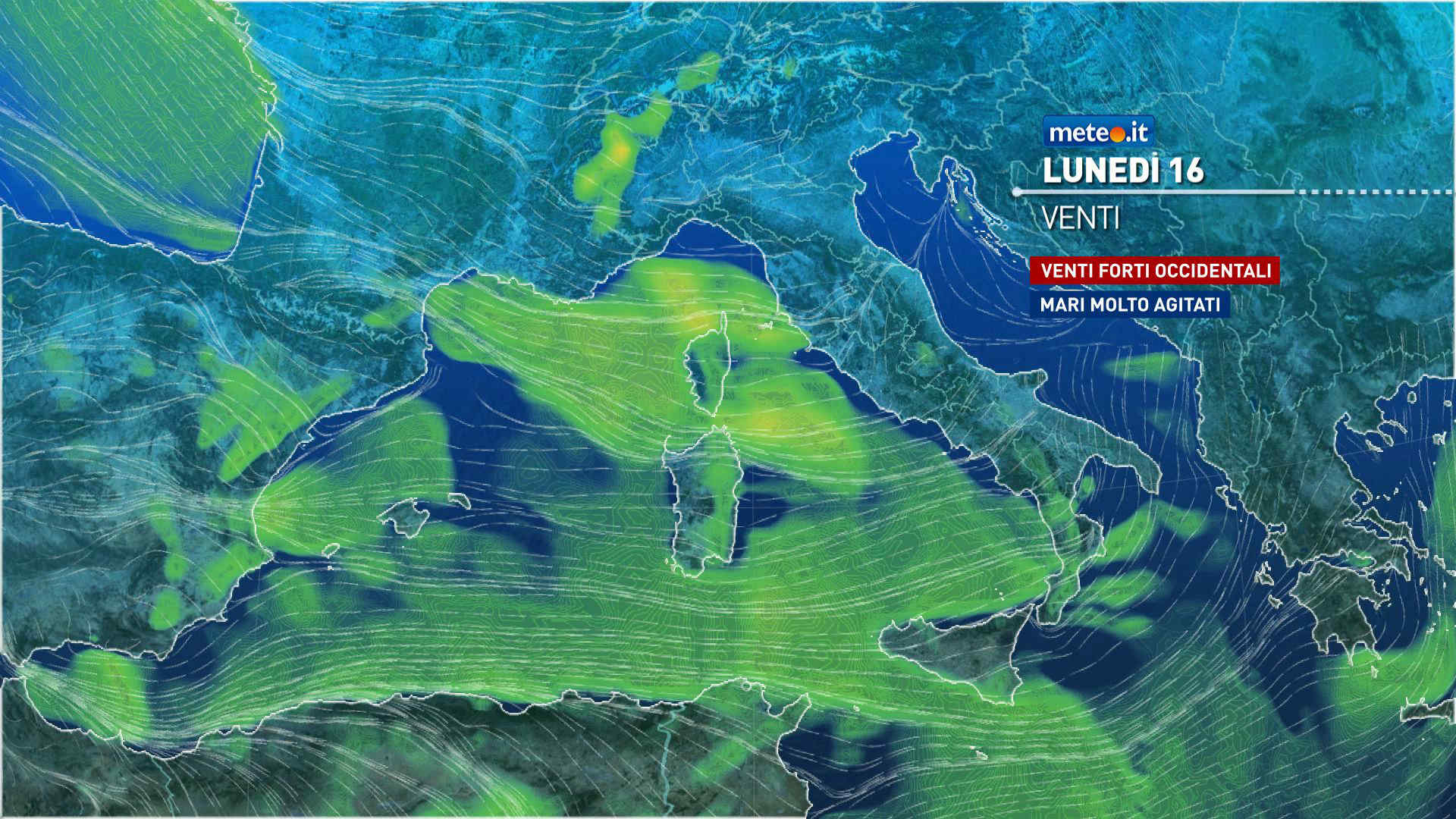 Lunedì nubi su gran parte d’Italia; cieli solo in parte nuvolosi o poco nuvolosi sulla pianura padana occidentale. Nel corso del giorno piogge possibili sulla Venezia Giulia, nevicate sulle Alpi in generale oltre i 700 metri di quota; pomeriggio instabile su gran parte del Centro-Sud e Sicilia, con neve anche sull’Appennino Centrale, ma solo al di sopra di 1300-1500 metri. Temperature minime in diminuzione al Nord e regioni adriatiche; massime in calo al Nord e regioni tirreniche, in rialzo nel in Sardegna. Venti forti nord-occidentali e mari molto agitati.