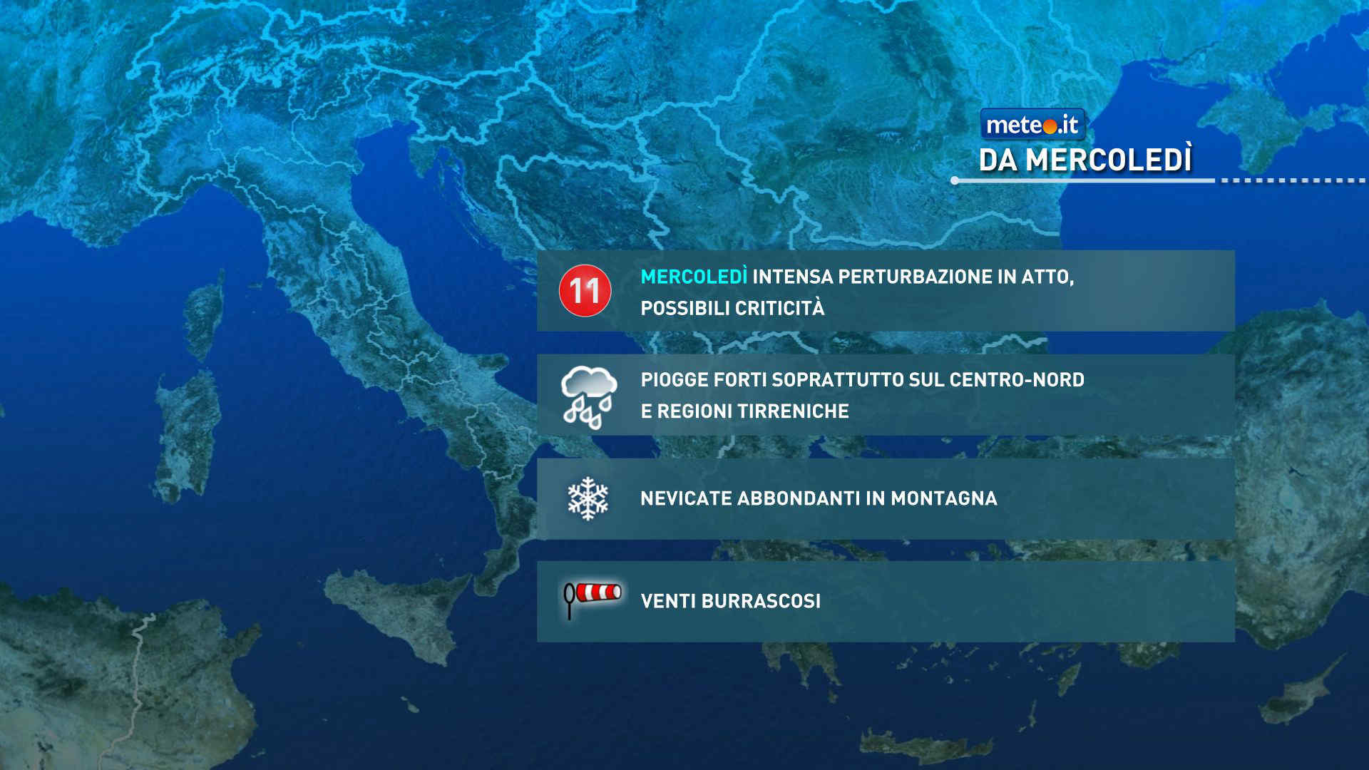 Meteo: giovedì 29 maltempo con forti venti, piogge e neve. La tendenza