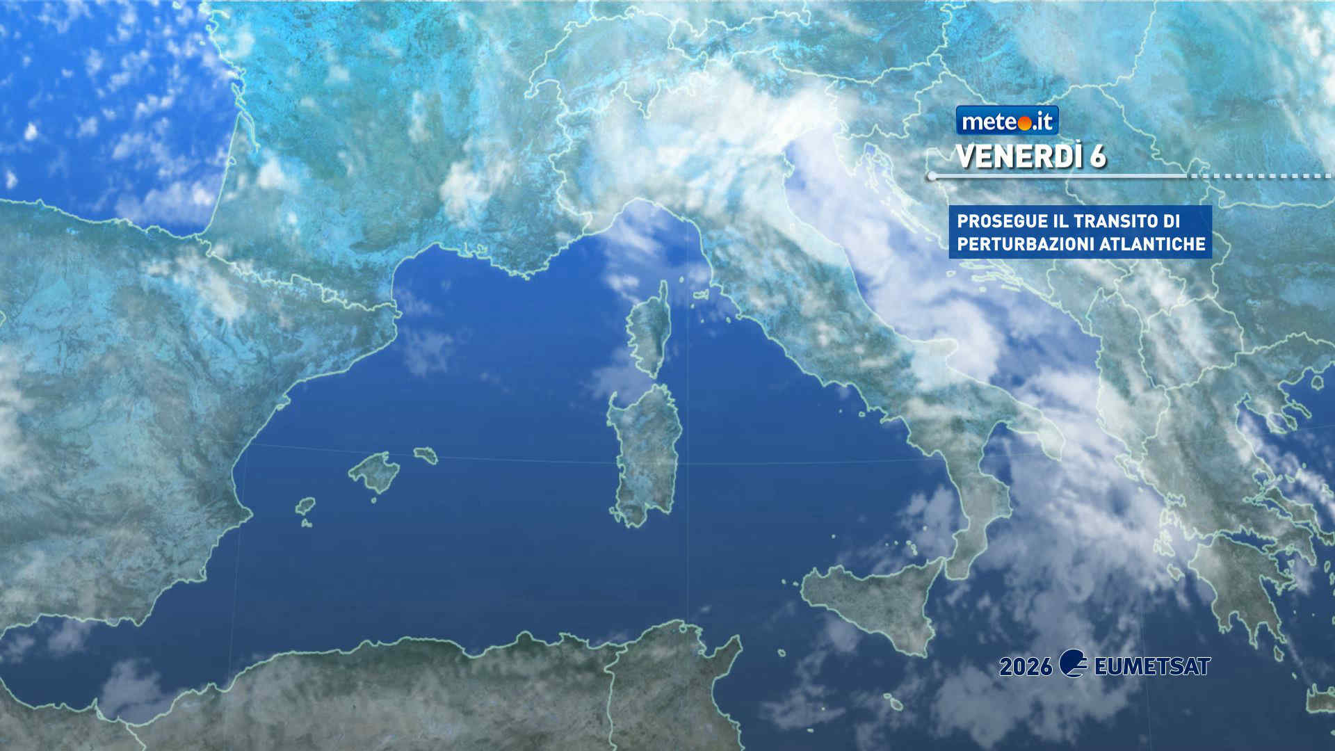 Per domenica 8 si conferma l’arrivo della sesta perturbazione di febbraio che potrebbe dare luogo alla formazione di un intenso vortice ciclonico in prossimità della Sardegna, attivando forti venti meridionali sull’Isola e sui mari di ponente; il vortice lunedì potrebbe spostarsi verso la Sicilia. Il peggioramento di domenica, riguardo alle precipitazioni, inizierà dalla Sardegna per poi estendersi a Liguria, regioni tirreniche e Sicilia; la tempistica e i dettagli delle aree coinvolte dai fenomeni però al momento hanno ancora un certo grado di incertezza.
