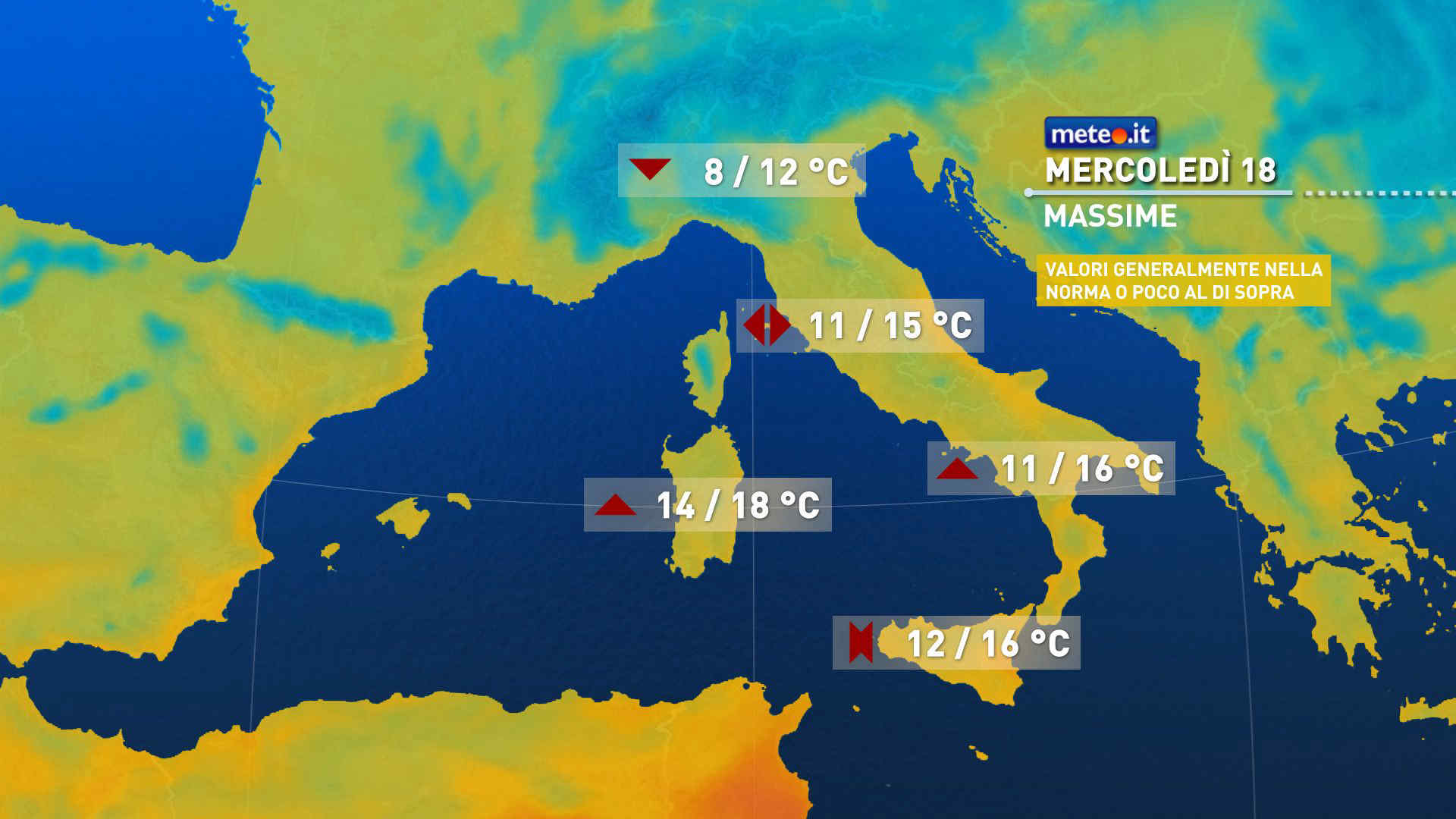Previsioni meteo per mercoledì 18 febbraio