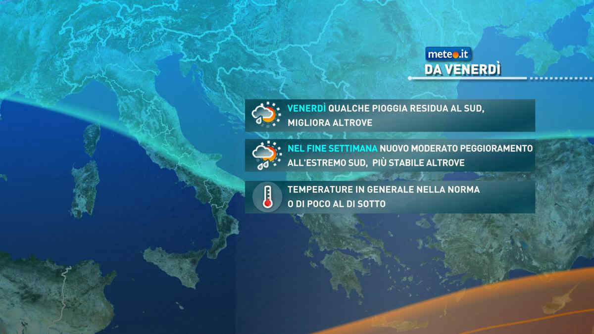 Le temperature non subiranno grosse variazioni: non andranno oltre i 16-19 gradi in val padana e nelle regioni centrali adriatiche, toccheranno invece i 20-23 gradi nel resto del Paese.