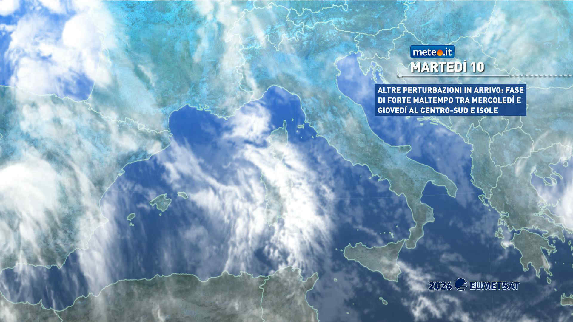 Successivamente, già nella giornata di giovedì 12, arriverà l’ottava perturbazione di febbraio, che darà luogo a condizioni critiche per le abbondanti piogge, anche forti, a partire dalla Sardegna e in rapida estensione a Sicilia e alle regioni centro-meridionali. Il Nord risulterà coinvolto in modo più marginale.