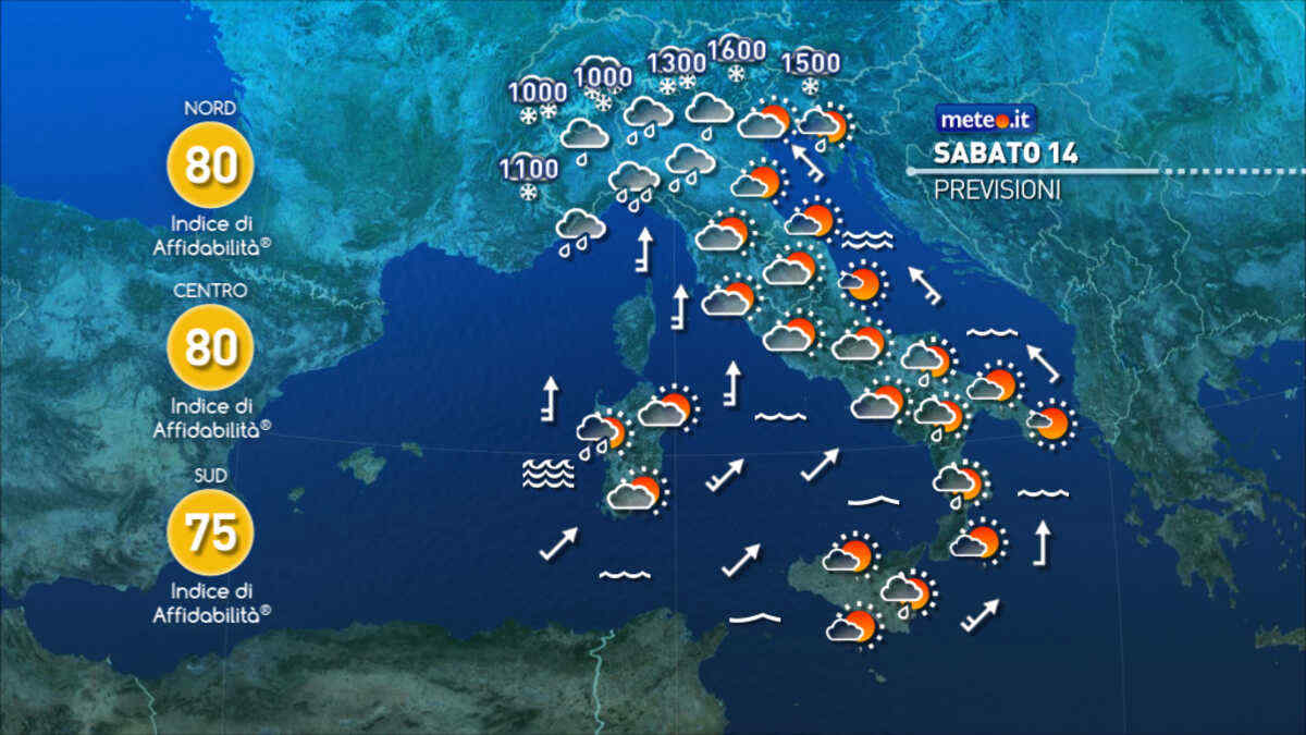 Le previsioni meteo per oggi, sabato 14 marzo