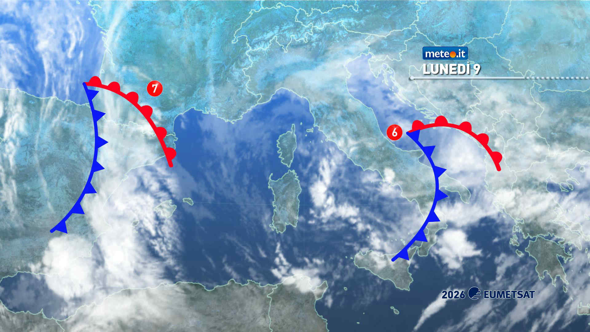 Le previsioni meteo per oggi (lunedì 9 febbraio)