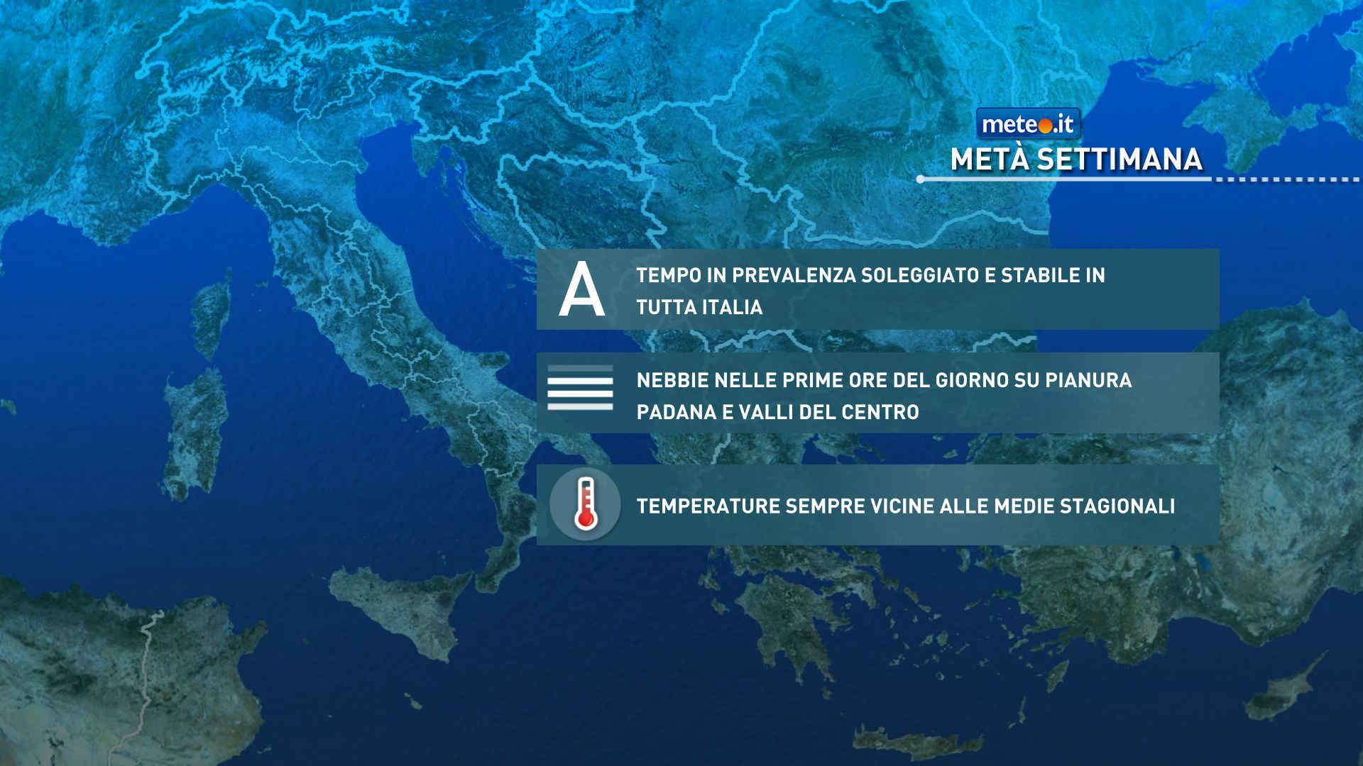 La settimana appena iniziata sarà caratterizzata, sotto il profilo meteorologico, dalla stabilità atmosferica e da temperature miti su tutta l’Italia. All’origine di questa situazione vi è la prevista espansione dell’anticiclone nordafricano sopra il Mediterraneo proprio nei giorni centrali della settimana.