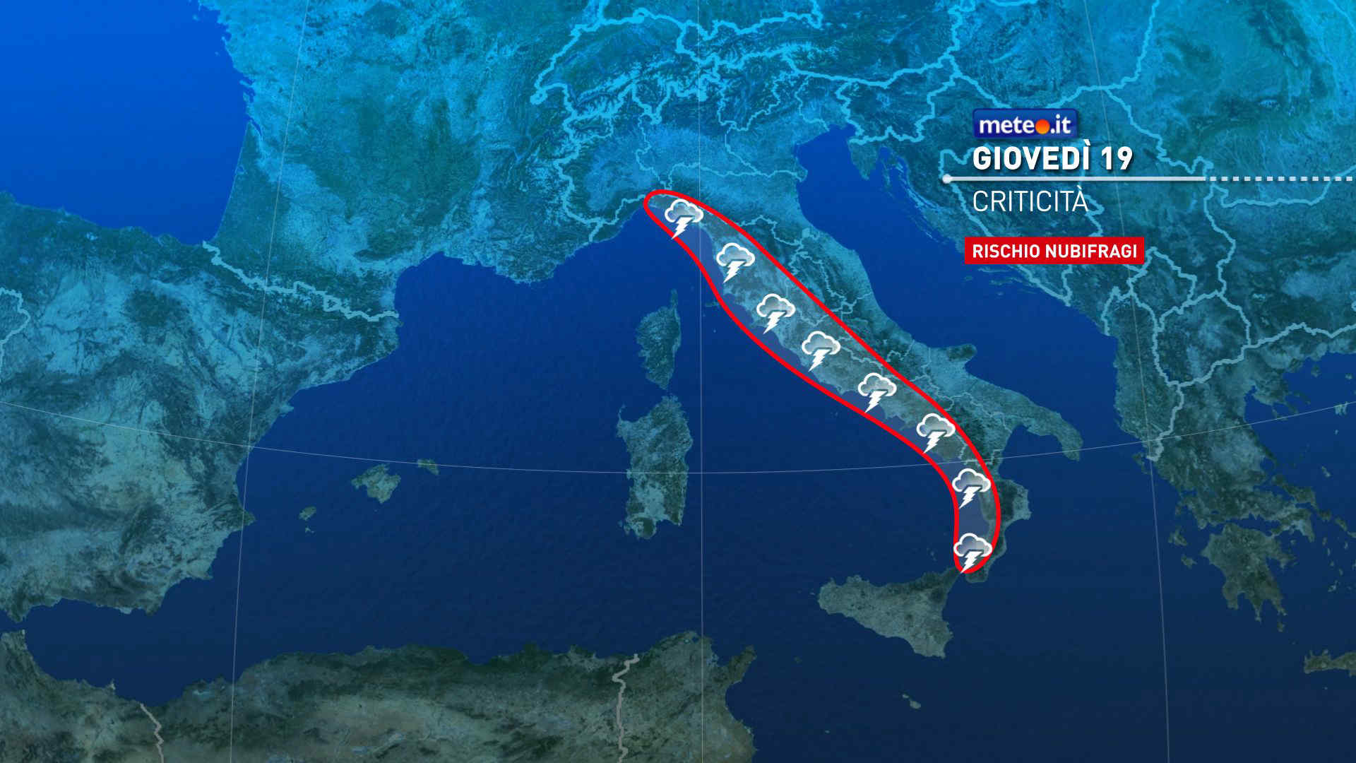 Nel pomeriggio qualche schiarita al Nordovest; ancora piogge sparse al Nordest, Centro, Campania e Sardegna, anche intense soprattutto in Toscana e Lazio, mentre nuove nevicate imbiancheranno le Alpi Orientali al di sopra di 800-1000 metri. Venti da tesi a burrascosi su tutti i mari e al Centro-Sud e Isole, con raffiche tempestose fino a 100 Km/h. Mari molto mossi o agitati, con mareggiate sulle coste esposte. Temperature massime in calo al Nord, Toscana e Sardegna, in crescita al Sud e medio versante adriatico.