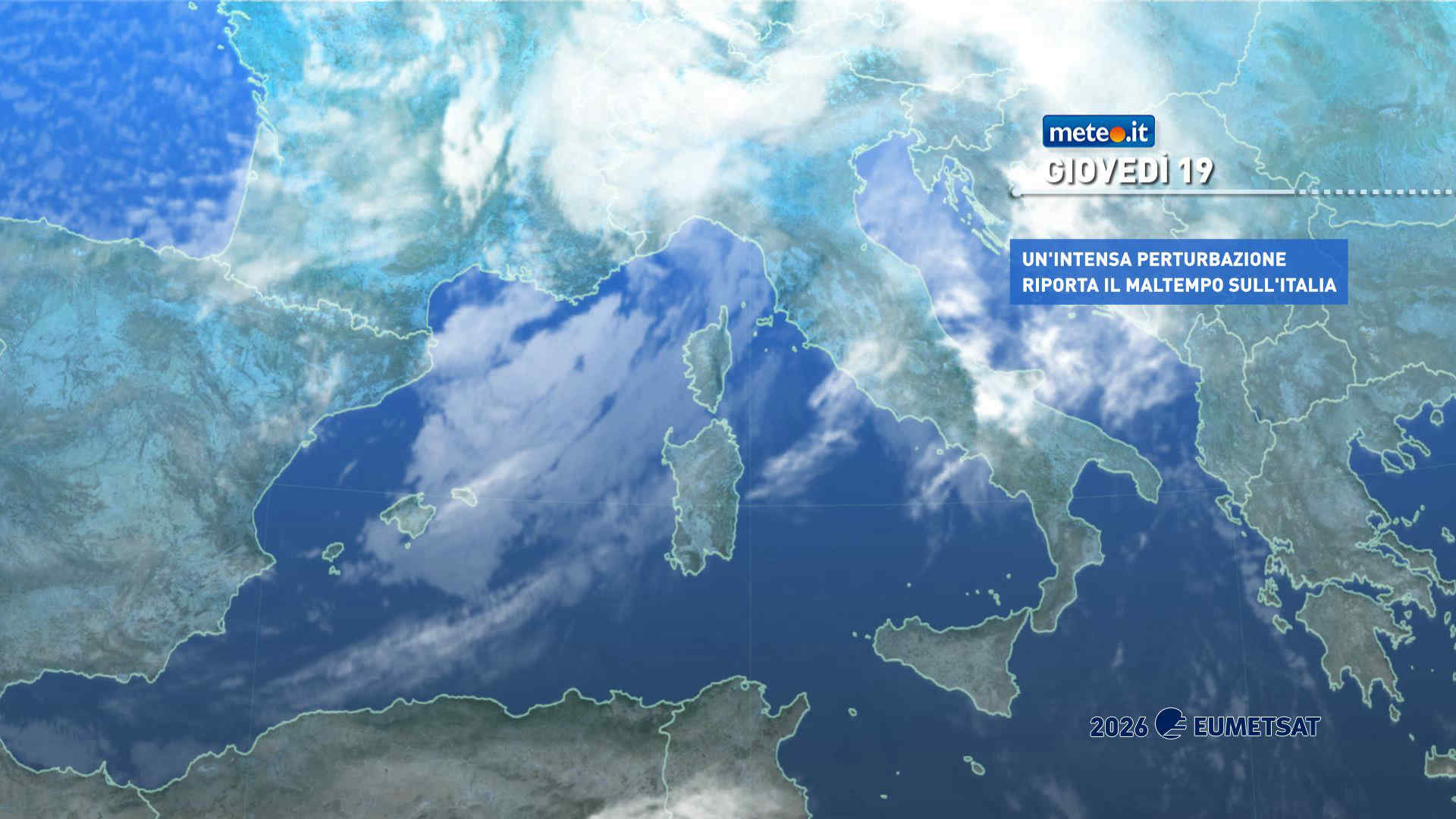 Al mattino poche nuvole al Sud e in Sicilia, parziali schiarite anche sulle regioni centrali adriatiche; piogge diffuse al Nord, nel resto del Centro e in Sardegna; possibili rovesci o temporali tra Levante Ligure e Toscana; neve fino a quote collinari su Alpi, Prealpi e Appennino settentrionale. Nel pomeriggio graduale miglioramento al Nord-Ovest, con schiarite su Ponente Ligure e Cuneese; insistono le precipitazioni su Lombardia e Nord-Est, con quota neve intorno a 800-1000 metri e rovesci in Friuli. Al Centro maltempo con temporali in Umbria, Toscana e Lazio. Peggiora al Sud, a iniziare dalla Campania, dove in serata sono attesi forti temporali.
