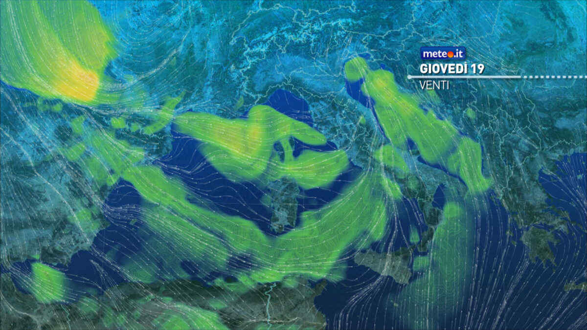 Venti forti o di burrasca su tutti i mari, al Centro-Sud e Isole, con raffiche tempestose fino a 100 km/h. Mari molto mossi o agitati, con mareggiate sulle coste esposte. Temperature massime in calo al Nord, Toscana e Sardegna, in rialzo al Sud e medio versante adriatico.
