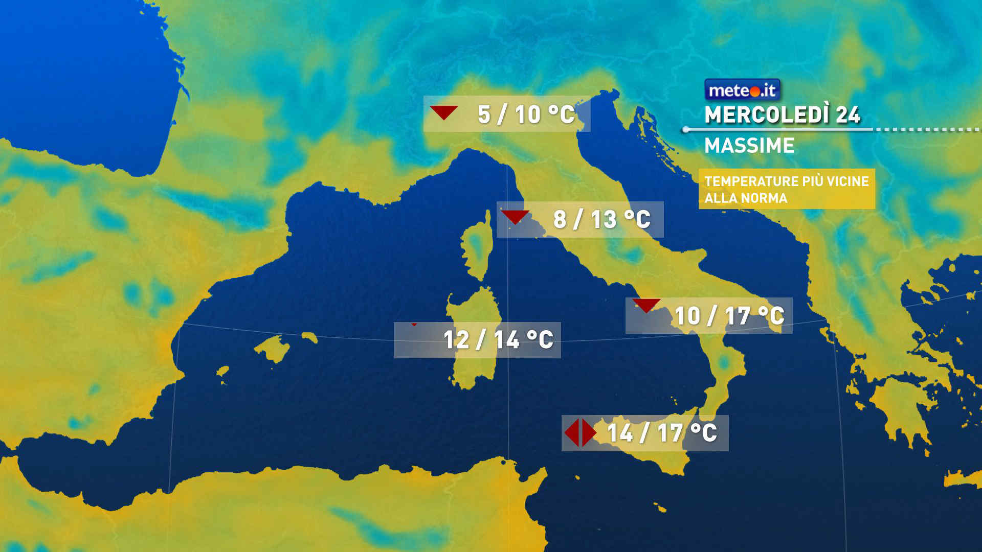 Tra Puglia, Basilicata, Calabria e Sicilia tempo variabile, con un po’ di sole soprattutto nel pomeriggio. Cielo da nuvoloso a coperto nel resto del Paese, salvo le ultime schiarite al mattino nelle Alpi e in Valle d’Aosta. Nel corso della giornata pioverà su gran parte del Centro-Nord (eccetto lungo le coste adriatiche di Marche meridionali, Abruzzo e Molise), sulla Campania e sulla Sardegna. Tra basso Lazio e Campania possibili temporali. Neve sull’Appenino abruzzese oltre i 1400-1600 m. Al Nord quota neve in calo dal pomeriggio, mediamente tra 600 e 1000 m. Nella notte di Natale neve fino a 500 m. tra Cuneese ed entroterra savonese e lungo la pedemontana piacentina e parmense. Temperature per lo più in diminuzione. Venti in marcato rinforzo: burrascosi di Bora sull’alto Adriatico, da moderati a forti di Tramontana in Liguria, di Libeccio al Centro-Sud; moderati da est in val padana e da ovest in Sardegna. Mari mossi o molto mossi, fino ad agitato l’alto Adriatico.