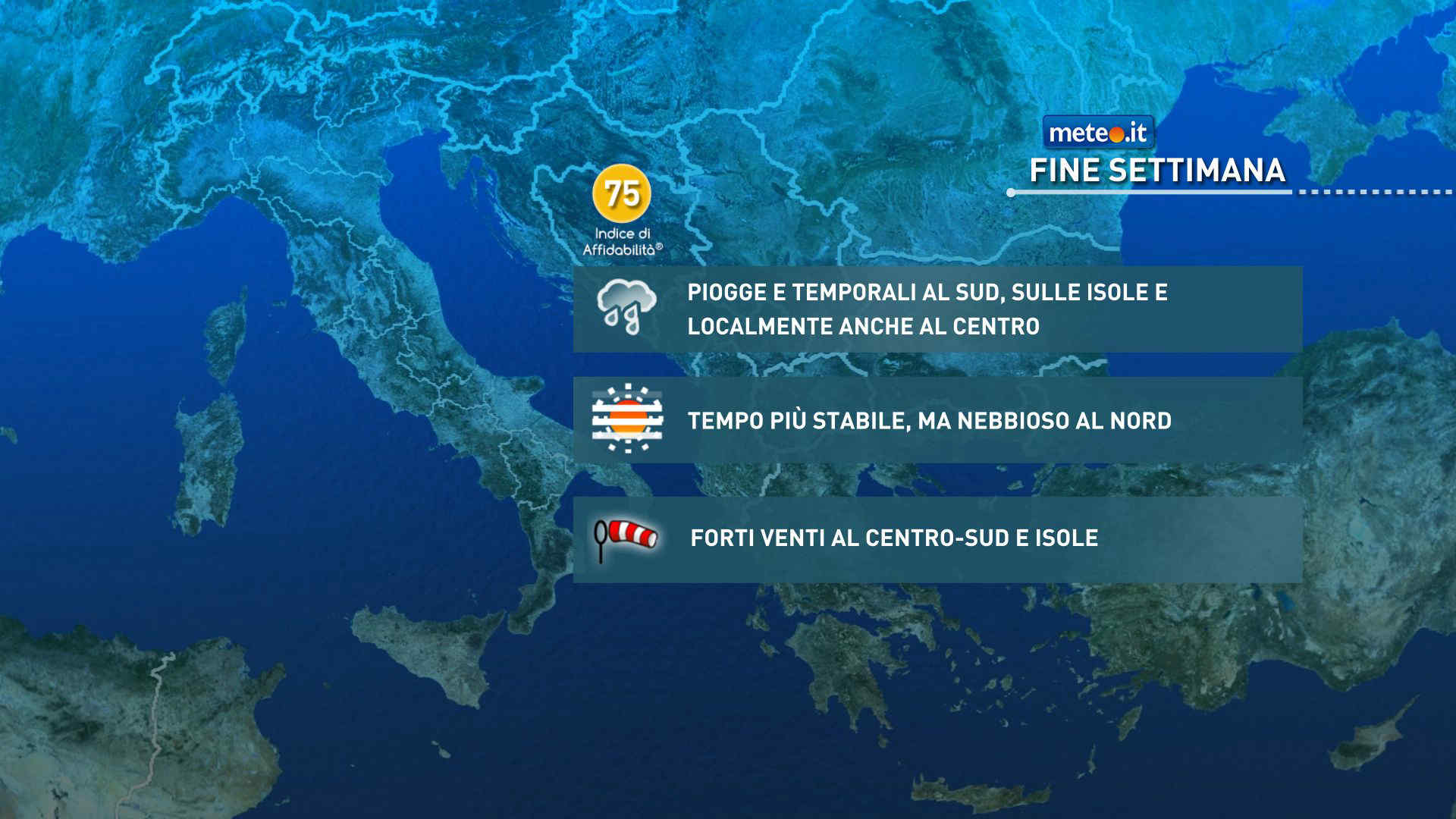 La tendenza per i giorni successivi resta al momento incerta, ma l’evoluzione più probabile mostra per la seconda parte della settimana un tempo in prevalenza stabile e soleggiato sull’Italia.