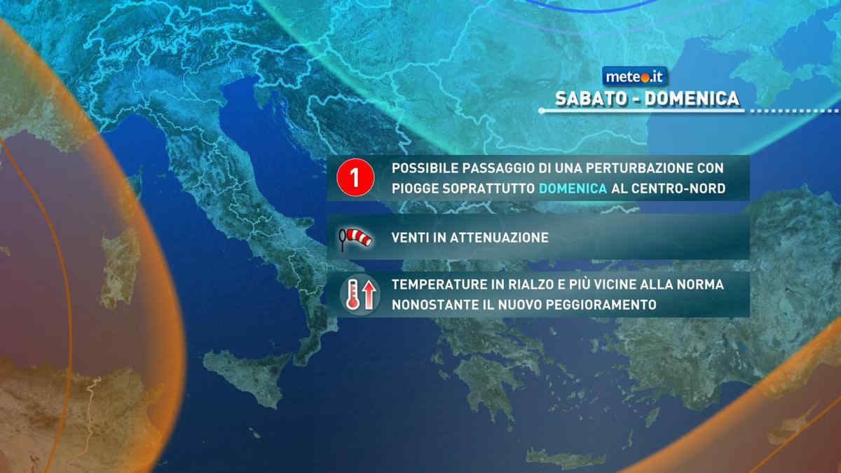 Sabato 4 ottobre al mattino osserveremo ancora qualche annuvolamento residuo al Sud, specie sulla Puglia meridionale. Nel corso della giornata le schiarite avranno la meglio nelle regioni meridionali mentre su quelle del Centro-Nord e in Sardegna assisteremo a un aumento delle nuvole, ma senza piogge di rilievo. I venti tenderanno a indebolirsi anche nelle regioni del Centro-Sud. Le temperature minime aumenteranno al Nord-Ovest, le massime non subiranno grandi variazioni al Nord mentre saranno in aumento nel resto d’Italia.