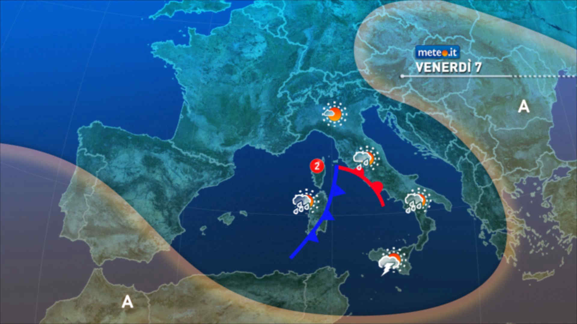 Domenica 9 rovesci isolati sulla Sardegna tirrenica, rovesci e temporali sparsi al Sud; qualche pioggia a tratti anche su Abruzzo, Molise, coste laziali. Tempo generalmente soleggiato al Nord, schiarite in Umbria e sulla Toscana. Temperature in calo nei valori minimi sulla Pianura Padana, per il resto senza grosse variazioni.
