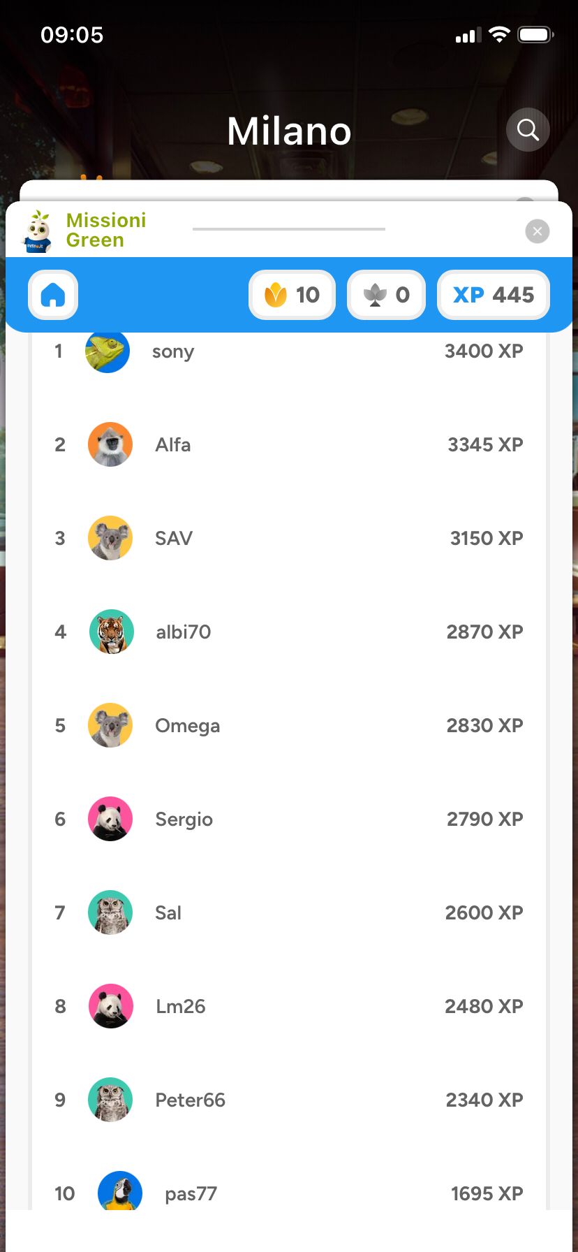 Sull’app c’è anche la classifica individuale, continuamente aggiornata, per sfidarti con gli altri. Ecco la nuova Top Ten degli utenti di questa settimana.